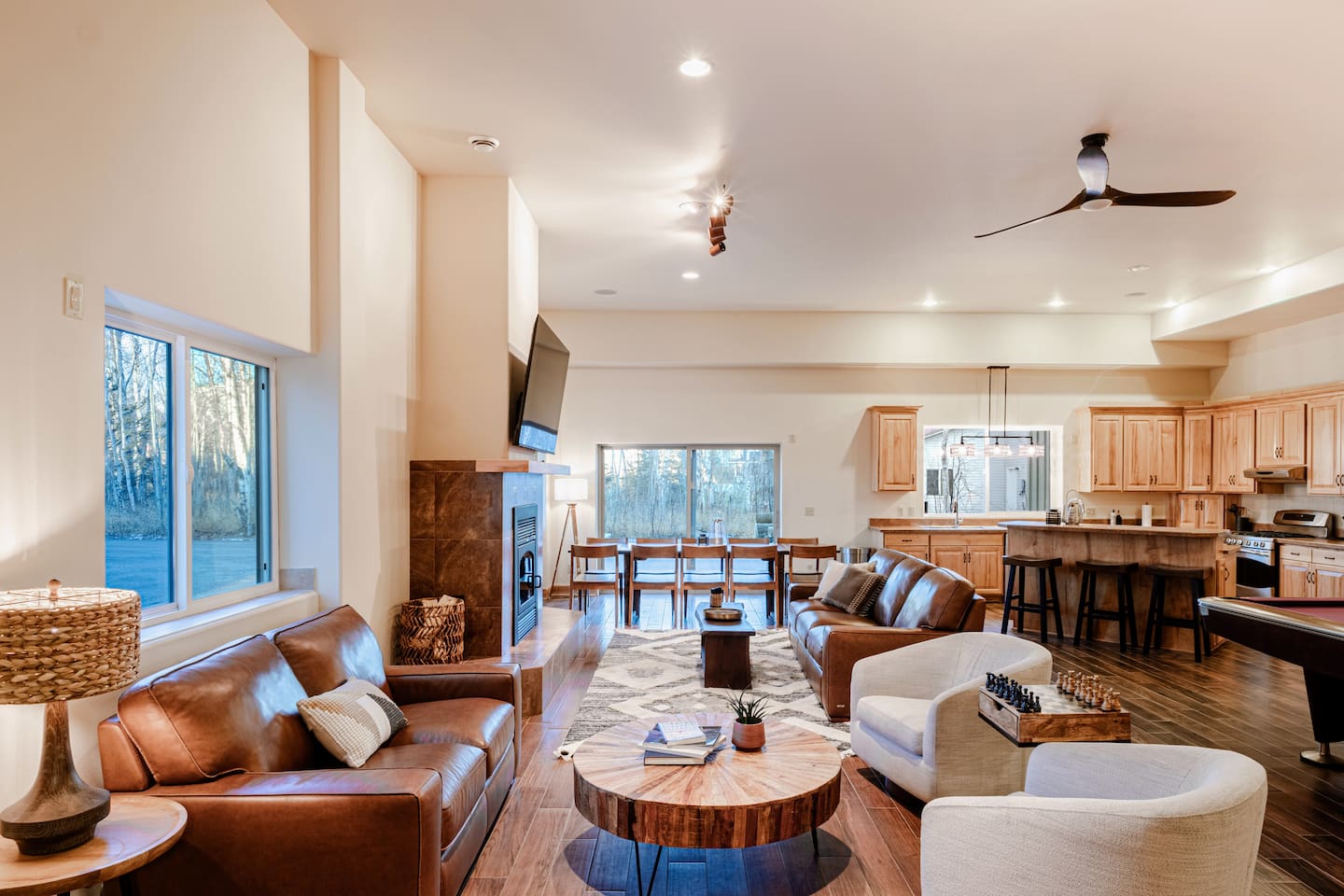 Welcome to the Hangar House! It looks like a working airport hangar on the outside. On the inside, a playful retreat with games and space to relax-- including a hot tub, sauna, and pool table. The home is ideal for large families and groups who want connection, comfort, and something memorable. Si...